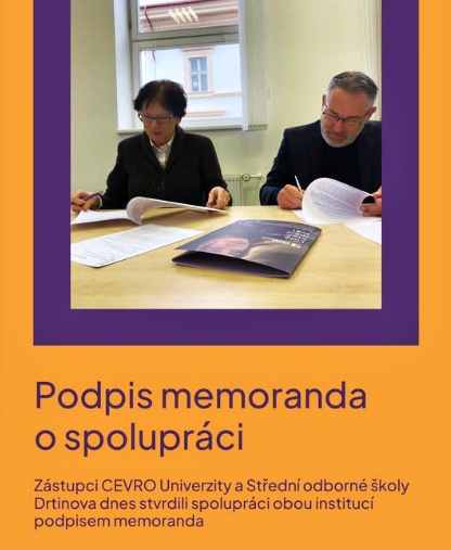 Dne 26. listopadu 2025 podepsali memorandum o spolupráci s CEVRO Univerzitou v Drtinově ulici ředitelka Pavla Nedomová a rektor Tomáš Jarmara. Memorandum zahrnuje nejen participaci studentů naší školy na akcích pořádaných CEVRO, ale též např.: