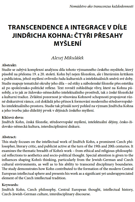 - Příspěvek do sborníku Nomádstvo ako transcenzus každodennosti od našeho kolegy PhDr. A. Mikuláška (3. 11. 2025), sleduje Kohnovo myšleni v kontextu česko-židovsko-německého intelektuálního prostředí, z něhož Kohn čerpal inspiraci.