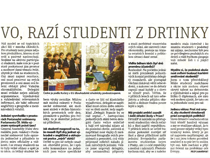 Drtinova (zakladatelem a prezidentem je Antonín Kučera, 4. A). Do České republiky přináší osvědčený koncept modelu Evropského